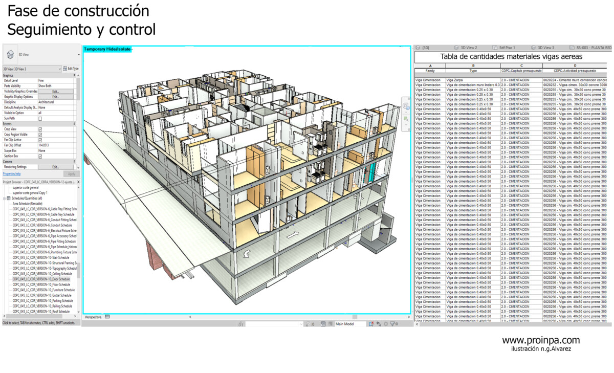 Seguimiento y control de las cantidades ejecutadas en obra a través del modelo BIM 5D gestionado para visualizar y cuantificar el avance de la construcción, control de cantidades para compras, almacén de obra y anticipos económicos